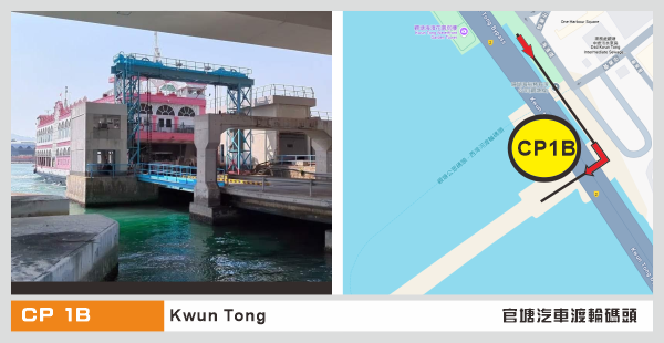 觀塘碼頭(CP1B)(乘坐渡輪)>北角碼頭(CP2)