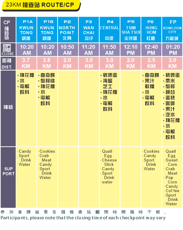 - 關於23公里組別, 參加者必須到達郵輪碼頭(CP:1A)