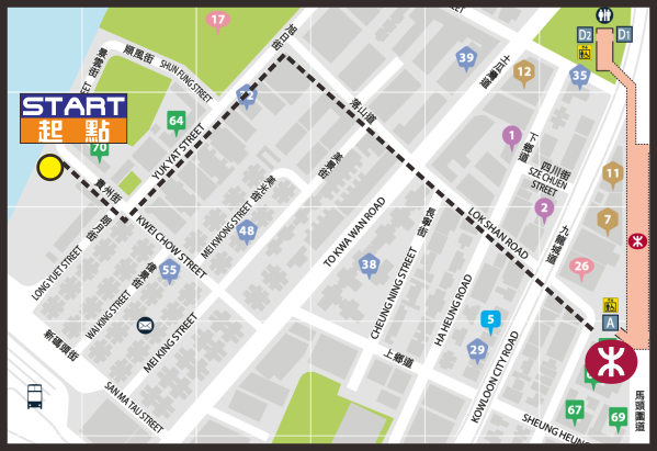 - 起點:九龍城碼頭(港鐵土瓜灣站A出口)